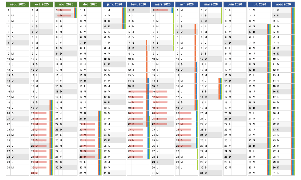 Organisation des congés de l’institut